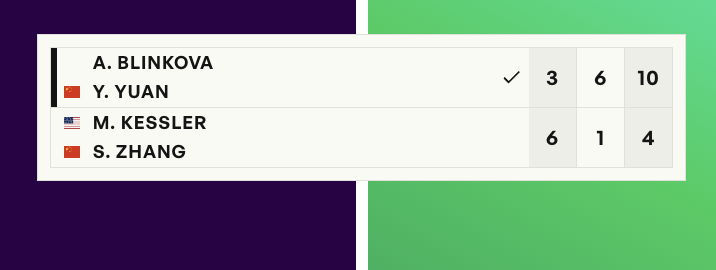 北京时间3月3日,在WTA250奥斯汀站双打决赛中,中国球员袁悦搭档布林科娃击败中国球员张帅与美国球员凯斯勒组合,成功夺冠。