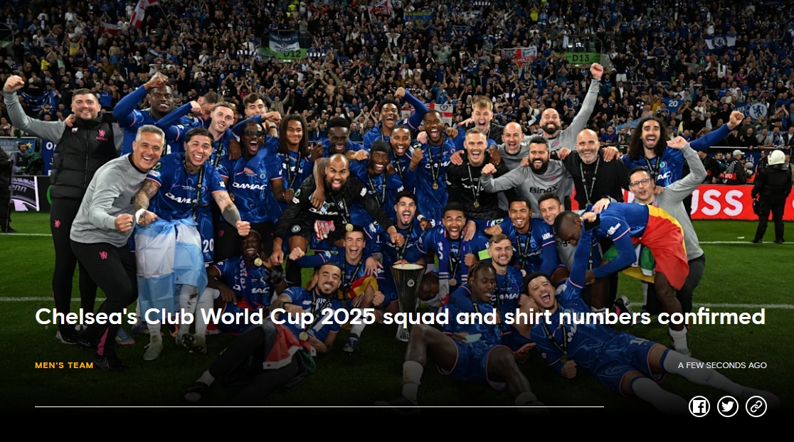 切尔西公布28人世俱杯大名单!帕尔默、恩佐领衔,德拉普、萨尔等新援在列、菲利克斯、斯特林、佩特洛维奇、蒂萨西以及奇尔维尔缺席。