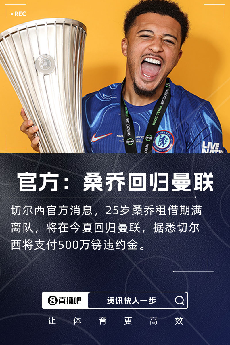 付500万镑违约金!切尔西官方:桑乔租借期满离队,球员将回曼联